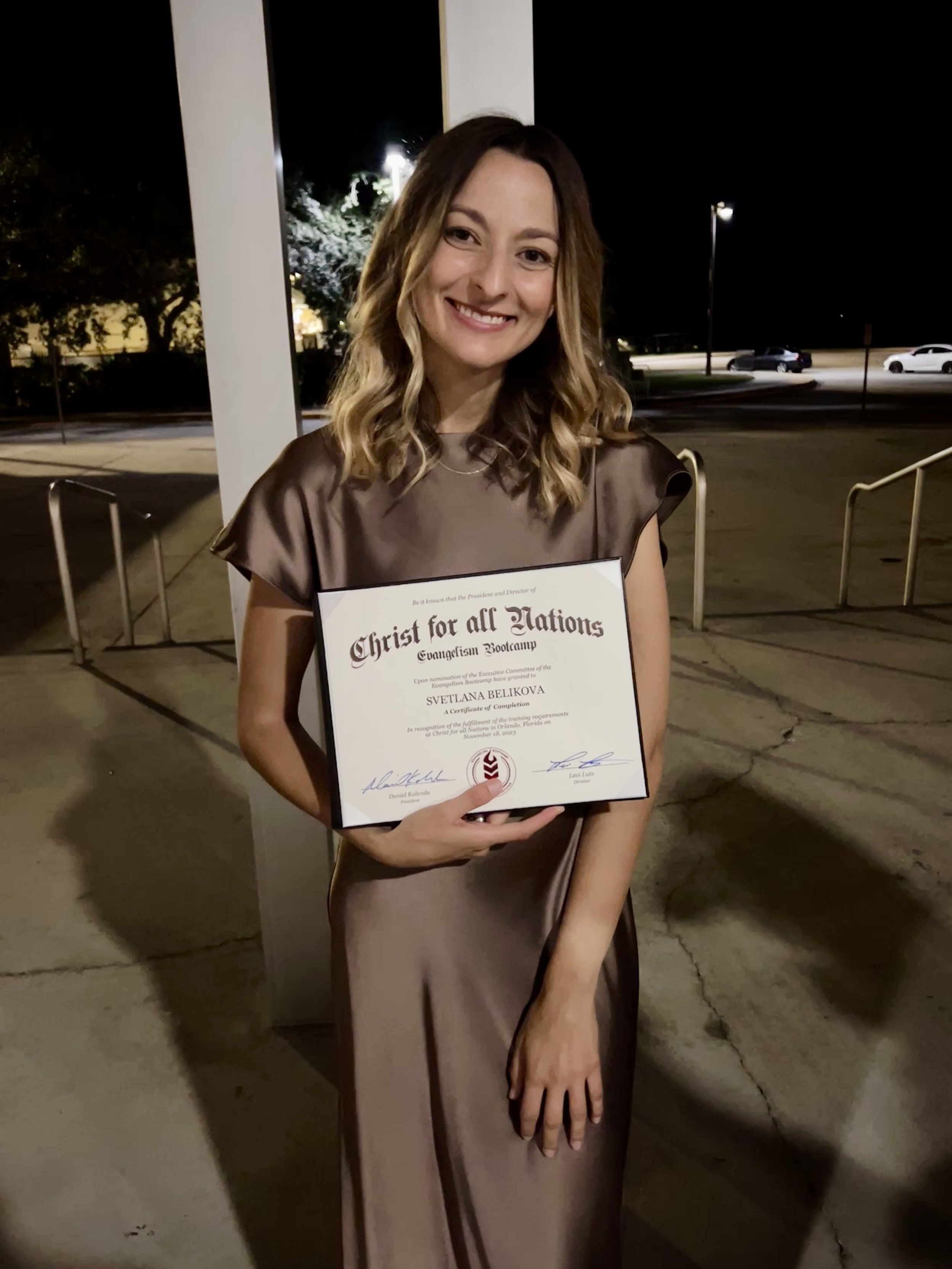My name is Svetlana Belikova and I currently reside in the USA. My ministry journey began in 2017 when I completed my YWAM DTS. In 2022, after hearing the news of the Russian invasion of Ukraine, I felt God’s call to leave behind a successful job and step into full-time ministry.